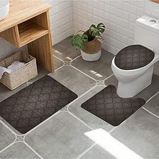 Badezimmer Set, rutschfeste Badematte und WC-Vorleger-Set, Alte Damast-Motive viktorianische Vintage-Revival-Design…