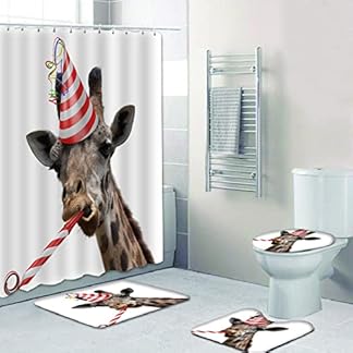 €45,95Produkt kaufenDuschvorhang Rote Weiße Giraffe Badezimmerteppich 4-Teiliges Set, Duschvorhang 180×180 Polyester+Badematte rutschfeste…