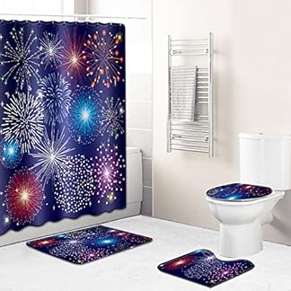 €43,15Produkt kaufenDuschvorhang Rotes Feuerwerk Badezimmerteppich 4-Teiliges Set, Duschvorhang 180×180 Polyester+Badematte rutschfeste(50×80)+U-Typ Teppich Wasseraufnahme Schmutzfangmatte+Toile Fußmatte