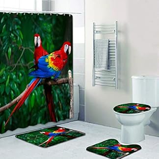 €43,15Produkt kaufenDuschvorhang Roter Papagei Grün Badezimmerteppich 4-Teiliges Set, Duschvorhang 180×180 Polyester+Badematte rutschfeste…