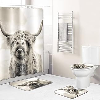 €45,95Produkt kaufenDuschvorhang Tierrinder Badezimmerteppich 4-Teiliges Set, Duschvorhang 180×180 Polyester+Badematte rutschfeste(45×75)+U…