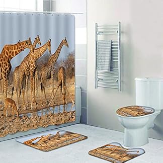 €43,15Produkt kaufenDuschvorhang Tiergiraffe Badezimmerteppich 4-Teiliges Set, Duschvorhang 180×180 Polyester+Badematte rutschfeste(50×80)+U…