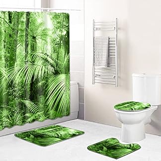 €45,95Produkt kaufenDuschvorhang Tropischer Grüner Dschungel Badezimmerteppich 4-Teiliges Set, Duschvorhang 180×180 Polyester+Badematte…