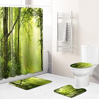 €43,15Produkt kaufenDuschvorhang Waldgrün Badezimmerteppich 4-Teiliges Set, Duschvorhang 180×180 Polyester+Badematte rutschfeste(45×75)+U…