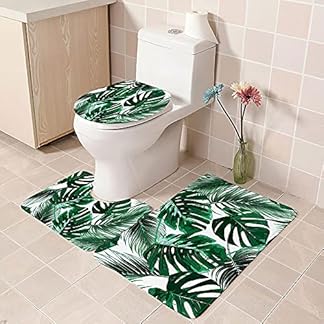 €39,90Produkt kaufendaogefi Badematte Set 3 Teiliges Badezimmerteppich Weißgrüne Blätter Badgarnitur rutschfest Badezimmer Weich Badvorleger…