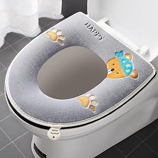 2 Stück dicker, weicher WC-Sitzbezug mit Griff, WC-Deckelbezug, Kissen, weich, dicker, waschbar, passend für alle ovalen WC-Sitze