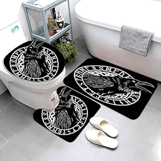 €6,99Produkt kaufenAOLIGL Badematte Wikinger Odin Krähe Schwarz Badematten Set rutschfest Waschbar Badgarnitur 3teilig – WC Deckelbezug U-förmigen Contour Badezimmerteppich Matte Flauschige