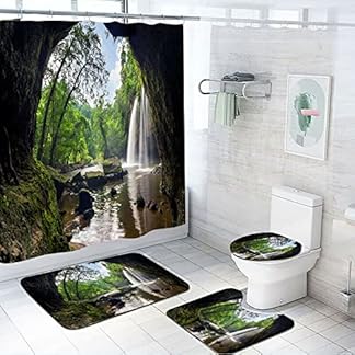 €15,00Produkt kaufen4-teiliges Duschvorhang-Set — Natur-Wasserfall-Landschaft — mit rutschfestem Teppich, Toilettendeckelabdeckung Badematte wasserdichtem Duschvorhang für Badeduschvorhang für Badezimmer 180X180 CM
