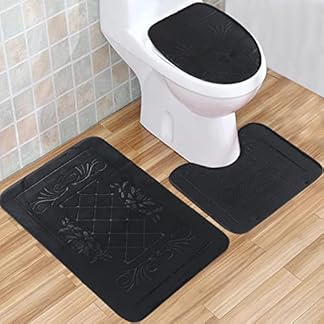 Badezimmer Badematte 3 Teilig Set, Abdeckungen Für Wc Zubehör, Flanell Saugfähig Badteppiche, Badvorleger Badgarnitur WC…