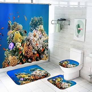 €7,98Produkt kaufenLKFFHAVD Unter Dem Meer Duschvorhang 180×180, Korallenriff Badezimmerteppich 4-teiliges Set, Shower Curtains Wasserdicht Dekorieren Sie Ihr Badezimmer (120 * 200CM,1)