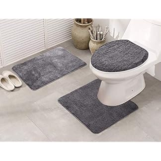 Angela Badematten-Set für Badezimmer, U-förmiger Konturteppich, Matte und WC-Deckelbezug, Anthrazit, 3-teilig