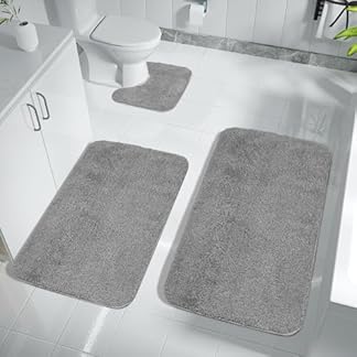 €11,50Produkt kaufenAchiiso Badematten Set 3 Stück,rutschfeste Badezimmer Toilettenmatte, Saugfähige Mikrofaser Badematte Bodenmatte Maschine waschbar Badteppich(Grau,U40*50+50 * 60+50 * 80cm)