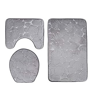 €18,39Produkt kaufenCyrank Badezimmerteppich-Set, 3-teiliges Badteppich-Set Mit Muscheldruck, Waschbare Badematte, Weiche Badezimmerteppiche, Badematten-Set Mit Toilettendeckelbezug(Grau)