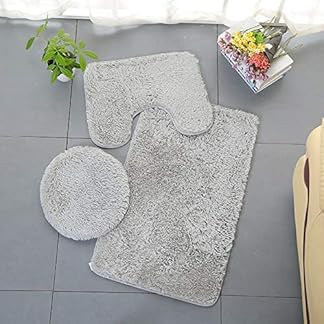 Baoblaze Shaggy Badematten-Set, 3-teilig, mit Toilettendeckelbezug, waschbarer U-Form-Teppich, Rutschfester Teppich, Badezimmerteppich-Sets für die, GRAU