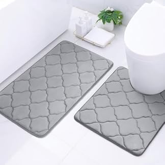 €33,99Produkt kaufenHomaxy Memory Foam Badezimmerteppich Set 2 teilig WC Vorleger mit Ausschnitt Set Saugfähige rutschfeste Badematte Set Waschbar Badteppich Set 2teilig, Grau