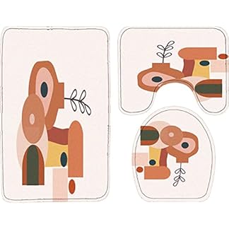 Ecosides Set mit 3 Stück abstrakten Boho Badteppich Set WC-Sitzbezug Modern Minimalistisch Geometrische Dekor Nordic Style Toilettendeckel Badezimmer Küche Flanell Anti-Rutsch-Karpat Türmatte