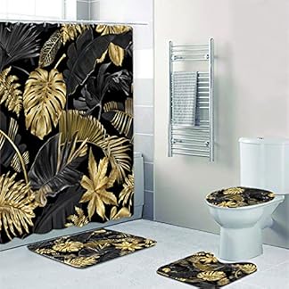 €33,99Produkt kaufenAiManFen Schwarz Und Gold Tropische Pflanze Palmblatt Badezimmer Dusche Vorhang Set Für Badewanne Exotische Blätter…