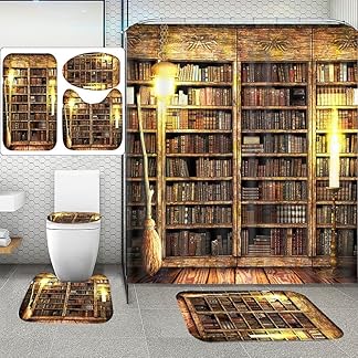 €33,99Produkt kaufenAiManFen 4Pcs Vintage Bibliothek Bücher Foto Duschvorhang Druck Badezimmer Dekor Vorhänge Set Wasserdichten Stoff Mit Haken 180x180cm