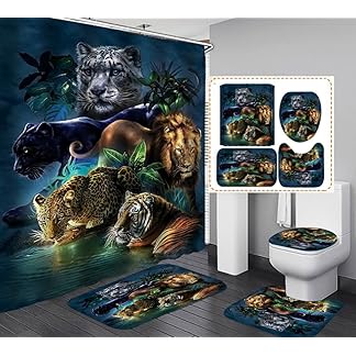 €33,99Produkt kaufenAiManFen Leopard Lion Tiger Duschvorhänge Für Badezimmer Sets Waldtiere Badevorhang Resistant Anti-Rutsch Teppich Wc…