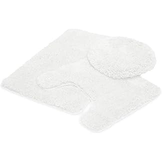 3-teiliges Badteppich-Set für Badezimmer, rutschfeste Badematte, Konturmatte und WC-Deckelbezug, massiv #6 (weiß)