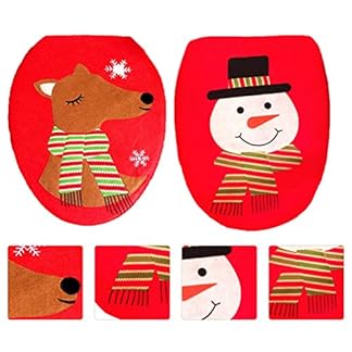 TOYANDONA 2Pcs Weihnachten Toilettensitzbezüge Weihnachten Schneemann Elch Toilettensitzbezug Matten Toilettendeckelbezug für Wohnkultur
