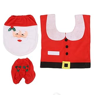 Hapivida 3-teiliges Weihnachten Badezimmer Set Cartoon Muster WC Toilettendeckelbezug, Teppich, Abdeckung für Wasserspeicher, für Hotel Kindergarten Einkaufszentrum