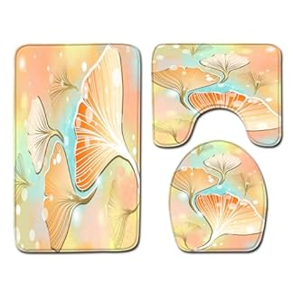 Bad Teppiche Set 3-Teiliges Orange Golden Ginkgo WC Vorleger Mit Ausschnitt Badematte Saugfähig WC Deckelbezug Badvorleger rutschfest Waschbar Toilettensitzbezug Badgarnitur (45x75cm)