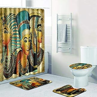 XUEPING 4 Stück Badematte Sets,(Wasserdichter Duschvorhang+Rutschfester Badteppich+Teppichboden+Toilettensitzabdeckung…