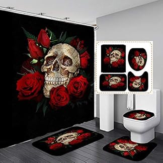 €24,99Produkt kaufenMOUMOUHOME Totenkopf-Duschvorhang mit roten Rosen, bedrucktes Badezimmer-Zubehör-Set mit floralem Totenkopf, Badematten, Duschvorhang-Sets mit 12 Haken, Geschenk für Jungen und Mädchen