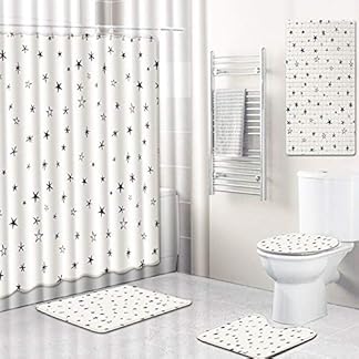 New 5 Stück Duschvorhang Set, Set Printing Badmatte + Contour Pad + Duschvorhang + 12 Hooks Badezimmer Dekoration,A,50…