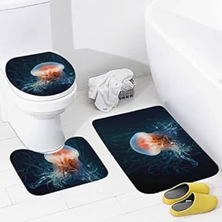 €30,89Produkt kaufenBadezimmer Badematte 3 Teilig Set,3D Qualle Saugfähige Teppich,WC-Deckelbezug,U-Förmige Matte 3-Teiliges Badezimmer Set