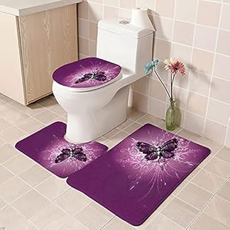 €18,59Produkt kaufendaogefi 3-Teiliges Badezimmer Badematte Teppich Set (Lila Tier Schmetterling), Flanell Saugfähig Badteppiche Badvorleger…