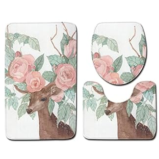 €22,18Produkt kaufen3 Teilig Badematte Set Hirsch Blume 3D Badematten Set rutschfest, Badezimmerteppich,U-förmiger WC-Vorleger,WC…