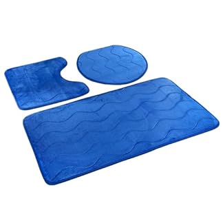 Badematten Badset Badgarnitur Rutschfester Badteppich Maschinenwaschbar (Sumba Blau 23, 3 TLG Set) 3 Stück: Teppich 45×75+ Unterlage 45×35+ Auflage 44×38