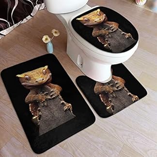 Aniaml Gecko Eidechse Badezimmer Teppich Fußmatte 3-teiliges Set Waschbare Badezimmer Bodenmatte/U-förmige WC Vorleger/O-Form Toilettendeckelbezug mit Vollgummirückseite