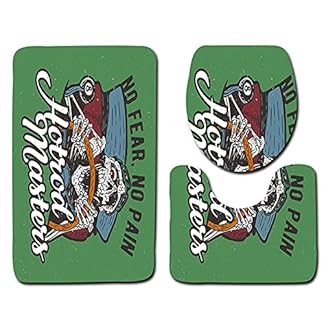 €7,99Produkt kaufenoneforus 3-teiliges rutschfestes Badematten-Set Punk Rock Totenkopf-Druck Schnelltrocknende Toiletten-Badematten Teppich Konturenmatte Toilettendeckel-Abdeckung