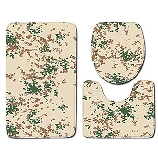 oneforus 3 Stück rutschfeste Badezimmermatten Set Camouflage Print Badematte Toilettendeckel Abdeckung U-förmiger Kontur…