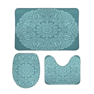 Badezimmerteppich Teppich Set rutschfest inkl. U-Form Konturenmatte Toilettensitzbezug Türkis Kreismuster Extra Weich Coral Fleece Memory Foam 3 Stück
