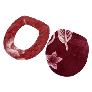Ruilogod Waschbare kastanienbraune Blume Druck Plüsch Toilette Deckel Matte W dunkelrote Sitzbezug 2 in 1