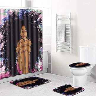 €42,99Produkt kaufenN / A Badematten Set 4 Stück Badteppich Set,Persönlichkeitsdekoration Afrikanische Frau Bedruckte Badematte Duschvorhang Sockelteppich Toilettensitzbezug-F_50 * 80cm