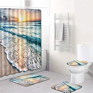 €44,99Produkt kaufenN / A Badteppich Set 4 teilig,Home Decoration Duschvorhang mit Tierdruck Weiche Badematte U-förmige Konturmatte…