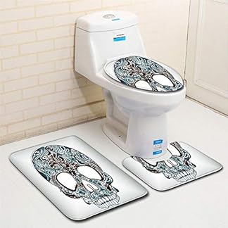 Claean-Acces-Home Toilettendeckelbezug Halloween Dekor 3 Stück Schädel Badematte Set Kürbis Laterne Bad Teppich Anti rutschfeste Dusche Und Toilette Sets-Nr. 8_50X80Cm 3St