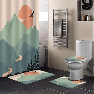 €36,72Produkt kaufenZDDWLDL 3D Gedruckter Duschvorhänge Set Rosa Grün Orange Sonnenuntergang Hohe Berge Duschvorhang Set 4 Stück Badezimmer…