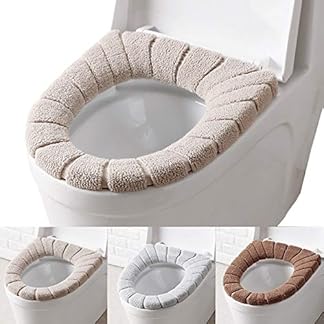 ADOROU 3 Stück Toilettensitzbezug Weicher Wärmer Toilettensitzbezüge WC-Sitzbezug Sitzkissen Verdickt WC-Sitzwärmer Toilet Seat Cover Waschbare WC Deckel Bezug (Beige+Braun+Grau)