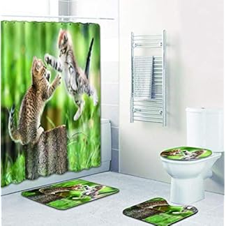 €36,72Produkt kaufenZDDWLDL 3D Gedruckter Duschvorhänge Set Grüne Braune Paartierkatze Duschvorhang Set 4 Stück Badezimmer Dekor Vorhang mit…