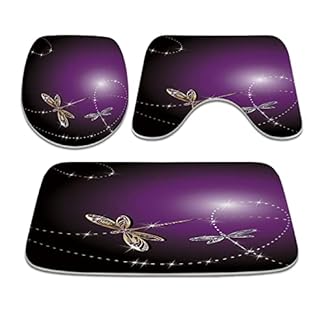 Gold und Silber Elegante Libelle Badezimmer Teppiche und Matten Sets 3 Stück Memory Foam Badvorleger U-Form Kontur Duschmatte rutschfest Saugfähig Samt Toilettendeckelbezug