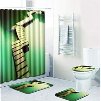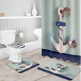 €36,72Produkt kaufenZDDWLDL 4Pcs Duschvorhänge Set Mit Rutschfesten Teppichen,Toilettendeckel und Badematte Grün-Weiß-Braune Seestraße…