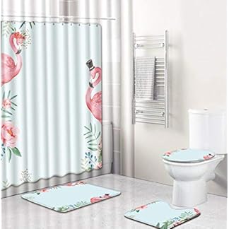 €36,72Produkt kaufenZDDWLDL 4Pcs Duschvorhänge Set Mit Rutschfesten Teppichen,Toilettendeckel und Badematte Blaues Rosa Blumenpaar…