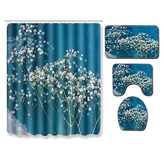 €36,72Produkt kaufenZDDWLDL 4Pcs Duschvorhänge Set Mit Rutschfesten Teppichen,Toilettendeckel und Badematte Blaugrüne Weiße Blüten…