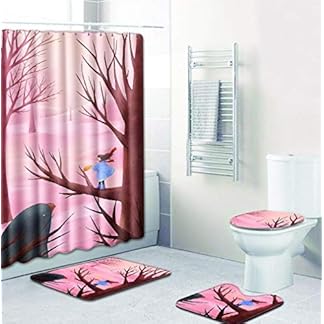 €36,72Produkt kaufenZDDWLDL 4Pcs Duschvorhänge Set Mit Rutschfesten Teppichen,Toilettendeckel und Badematte Rosa Blume Zweig Mädchen Tier…